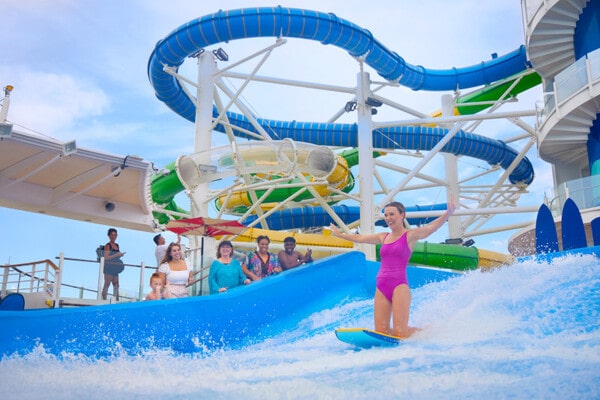 Si lo tuyo es la acción, Royal Caribbean gana por goleada. Encontrarás desde toboganes acuáticos, espectáculos estilo Broadway, teatro acuático, gimnasios de última generación, simuladores de surf, tirolina, patinaje sobre hielo, batallas láser y hasta parques acuáticos con toboganes de vértigo en alta mar. Todo esto está incluido en el precio.